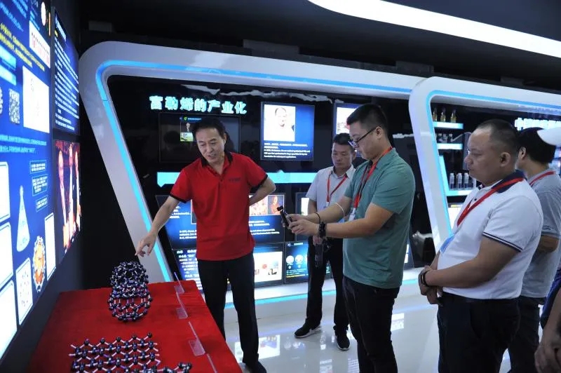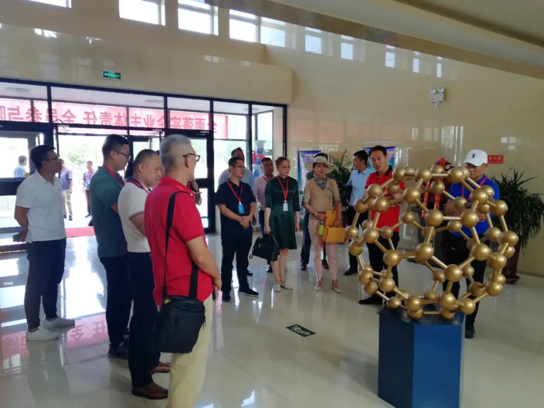 碳立方科技有限公司董事長、內(nèi)蒙古碳谷科技有限公司董事長孫永青帶領(lǐng)中汽聯(lián)一行參觀了富勒烯研發(fā)基地及生產(chǎn)車間并親自作了講解。孫董事長指出富勒烯是最具代表性的碳納米材料,是繼金剛石、石墨之后人類發(fā)現(xiàn)的又一種碳的同素異形體,現(xiàn)在人們比較熟悉的是C60,只有0.7納米,它在1985年由英國和美國三個(gè)科學(xué)家在實(shí)驗(yàn)室發(fā)現(xiàn)的,于1996年獲得諾貝爾化學(xué)獎(jiǎng)。2015年9月,碳谷科技在呼和浩特舉辦了“世界富勒烯大會(huì)”,富勒烯的發(fā)現(xiàn)者-諾貝爾獎(jiǎng)獲得者克羅托爵士,中國科學(xué)院院士、歐洲科學(xué)院院士、法國、英國、瑞典、俄羅斯、意大利、美國、日本等國的科學(xué)家等全球多個(gè)國家,多個(gè)領(lǐng)域的頂級(jí)科學(xué)家參會(huì)進(jìn)行學(xué)術(shù)交流。2018年7月5日,碳谷科技在呼和浩特市的生產(chǎn)基地,舉辦了“中國首條富勒烯噸級(jí)生產(chǎn)線投產(chǎn)暨國際富勒烯產(chǎn)業(yè)發(fā)展論壇”,與世界上20余位富勒烯領(lǐng)域的頂級(jí)科學(xué)家,就富勒烯產(chǎn)業(yè)化應(yīng)用,做了深入的交流探討,推進(jìn)一部分合作項(xiàng)目的健康發(fā)展。孫董事長介紹目前富勒烯應(yīng)用比較廣泛的大概有4個(gè)領(lǐng)域:國防軍工領(lǐng)域、工業(yè)新材料領(lǐng)域、生物醫(yī)藥及健康領(lǐng)域、新能源及環(huán)保領(lǐng)域。孫董事長認(rèn)為富勒烯現(xiàn)在已經(jīng)不單單是一個(gè)簡單的工業(yè)材料,而是一個(gè)背負(fù)著工業(yè)強(qiáng)國使命的國家戰(zhàn)略材料。